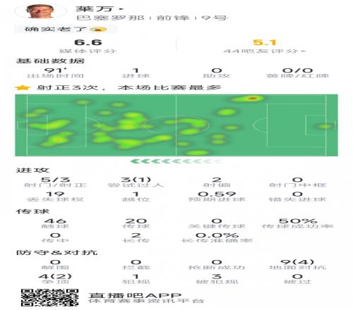 体育播报1月22日宣 在本轮欧冠,巴萨4-2击败布拉格斯拉维亚。以下为莱万本场数据: