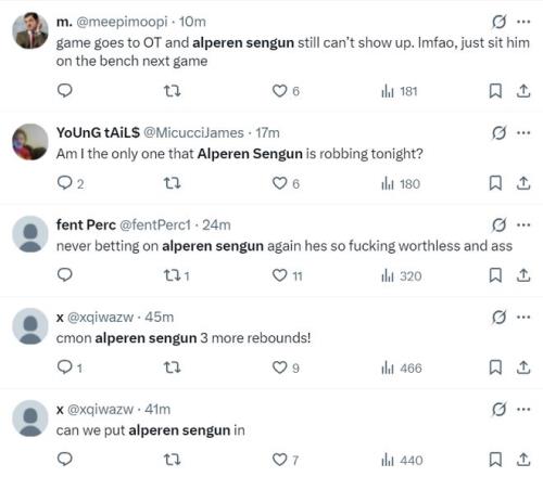 但火箭球迷们纷纷朝着申京开炮:1.比赛进入加时申京就不该登场,下一场比赛让他坐在板凳席吧。